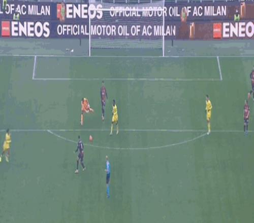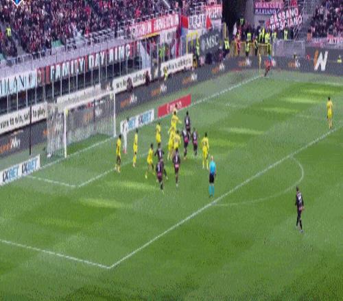 半场补时第11分钟,米兰前场右侧角球机会,皮球主罚到禁区,拉比奥特头球摆渡,后门柱位置普利西奇凌空推射破门,AC米兰1-0领先维罗纳。本赛季15次出场,美国队长打进10球,堪称球队进攻大腿。
